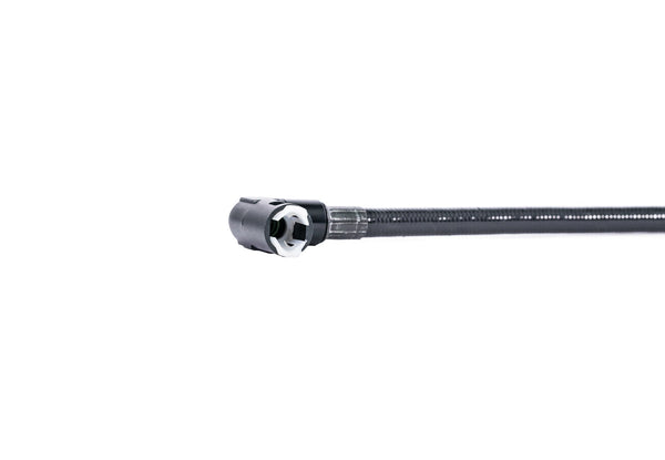 The PRL Motorsports PTFE Flex Fuel Line Assembly is designed to replace the standard fuel line assembly(s) in our Flex Fuel Ethanol Sensor Kits. These lines are manufactured using Fragola 6000 Series Lined PTFE Hose that is reinforced with stainless steel braiding and coated with black nylon for optimal durability. Each hose end features a custom forged OE-style fitting.- 2500 PSI Working Pressure and 10000 PSI Burst Pressure