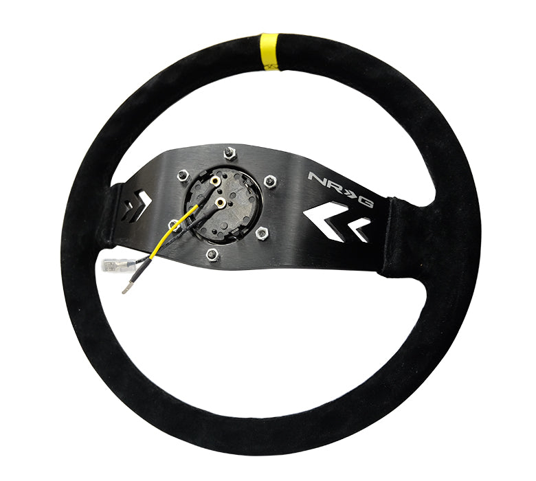Our first and only 2-spoke Steering Wheel, featuring NRG Arrow cut outs mirrored along the spokes.
