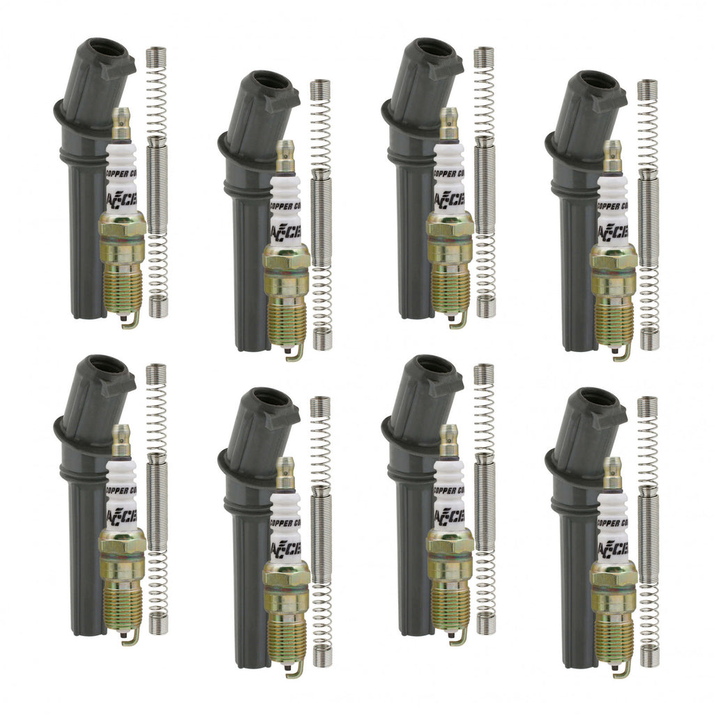 If you own a vehicle 15 years old or newer odds are it doesn't have a distributor or, in some cases, ignition wires. In the old days the parts required for a tune-up consisted of points, condenser, distributor cap, rotor, spark plugs and a set of spark plug wires. Although most of today's vehicles can go many more miles between tune-ups than before they still need to have their ignition systems serviced from time to time. If performance is at the top of your list then step up to ACCEL's Late Model Tune-Up Kits with HP Copper Core spark plugs and COP High Performance Boots for 2 & 3 valve modular Ford engines or HP Copper Core spark plugs and a set of LS Ceramic booted plug wires for you GM folks!