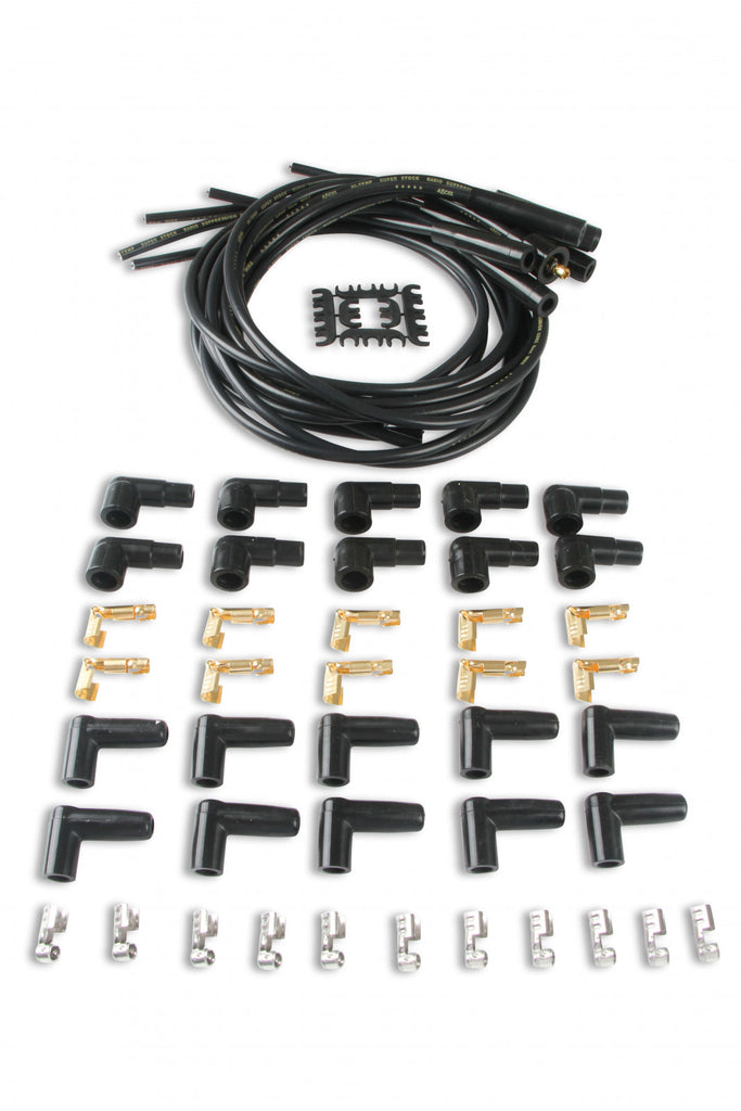ACCEL's SuperStock 4000 series spark plug wire sets are designed to upgrade an OE ignition system for high-spark delivery levels for street driven applications. The 450 degree F rated silicone jacket is extruded over a tightly woven, rugged fiberglass braid. The braid is applied over high dielectric strength EPDM (Ethylene Propylene Diene Monomer) inner insulation for ignition wire performance that exceeds SAE specifications.