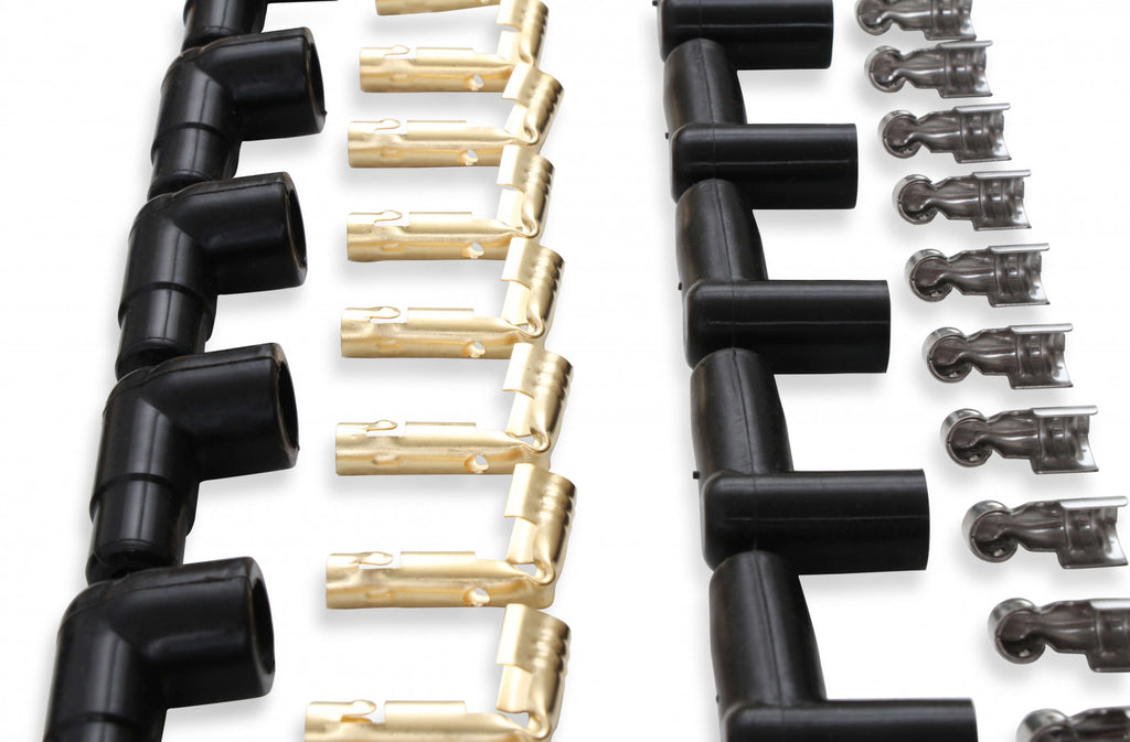 ACCEL's SuperStock 4000 series spark plug wire sets are designed to upgrade an OE ignition system for high-spark delivery levels for street driven applications. The 450 degree F rated silicone jacket is extruded over a tightly woven, rugged fiberglass braid. The braid is applied over high dielectric strength EPDM (Ethylene Propylene Diene Monomer) inner insulation for ignition wire performance that exceeds SAE specifications.