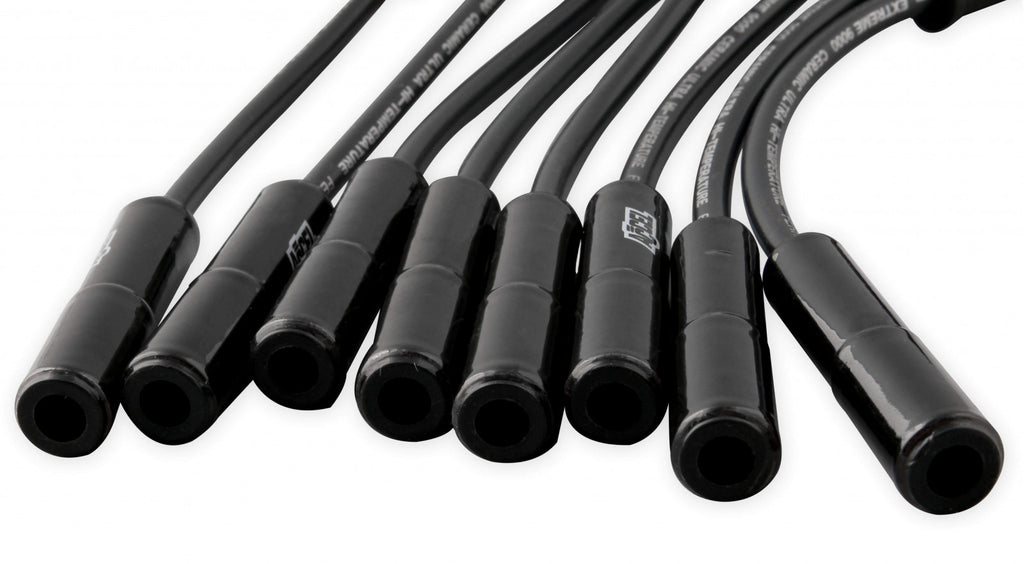 ACCEL now offers the cure for burnt spark plug boots with Extreme 9000 Ceramic wire kits. The 8mm Ferro-Spiral core wire now has ceramic boots on the spark plug end of the wires. Ceramic boots withstand up to 2,000 degrees. Great for running headers with close tolerances, an engine bay with little room, or an RV with boots that melt because of heat. Ultra high-temperature double silicone construction wire rated at 600 degrees Fahrenheit peak. 500 ohms/ft Ferro-Spiral core developed for performance use. Excellent energy delivery to the spark plugs, while providing the highest level of RFI/EMI suppression. Stainless steel spark plug terminals for maximum spark energy to the plugs. Pre-made to factory lengths for a perfect fit.