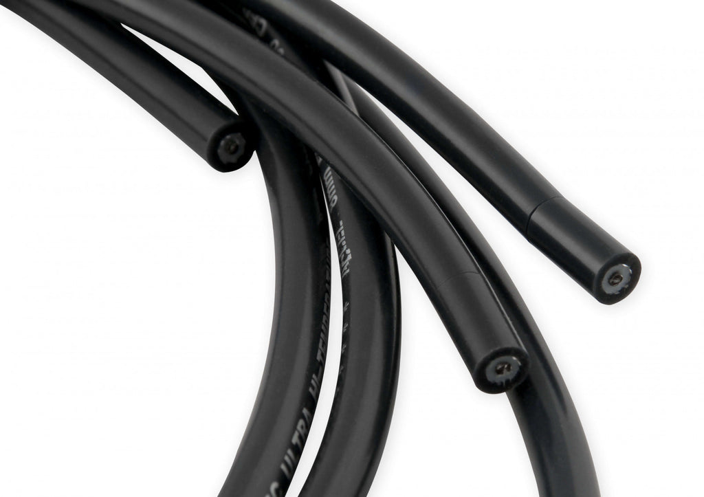 ACCEL Extreme 9000 Ceramic Boot Wires feature ultra high-temperature, double silicone, 8mm, 500 ohms/ft Ferro-Spiral core wire developed for performance use. The wire is rated at 600 degrees Fahrenheit peak and the black Ceramic boots withstand up to 2,000 degrees. Great for running headers with close tolerances, an engine bay with little room or an application with high under-hood temps. ACCEL Extreme 9000 wires offer excellent energy delivery to the spark plugs through stainless steel spark plug terminals, while providing the highest level of RFI/EMI suppression.