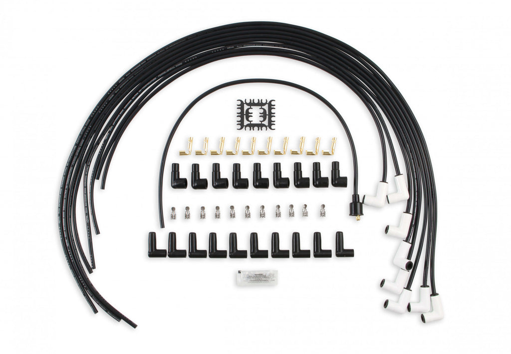 ACCEL now offers the cure for burnt spark plug wire boots with Extreme 9000 Ceramic Wire kits. The 8mm Ferro-Spiral core wire now has ceramic boots on the spark plug end of the wires. The ceramic boots will withstand up to 2,000 degrees F. If you are running headers with close tolerances, have an engine bay with little room or an RV with boots that melt because of heat, these wire kits are the answer for burnt and melting boots. The wire uses a 500 Ohms/ft Ferro-Spiral core developed for performance use. It provides excellent energy delivery to the spark plugs, while providing the highest level of RFI/EMI suppression. The Extreme 9000 Ceramic Wires also feature stainless steel spark plug terminals for maximum spark energy to the plugs.