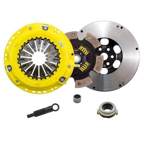 ZX4-HDG6 kit features ACT's most popular Heavy Duty pressure plate. ACT Heavy Duty pressure plates use exclusive diaphragm design to increase clamp load, reduce deflection and maximize clutch life. All diaphragms endure a four-stage, heat-treating process for unparalleled performance. ACT pressure plates have precision cover stampings to provide rigidity and consistency. ACT??s 6-pad, spring-centered race disc features a spring-center to properly damp torsional vibrations and resist failure under harsh conditions. ACT spring retainers utilize wraparound spring windows and thicker retainer stampings to provide spring support, reduce stress concentrations, and increase strength and reliability. With the 6-pad, spring-centered race disc, engagement is harsher, but shifting is faster. The 6-pad, spring-centered disc is recommended for larger clutch sizes to absorb more heat.