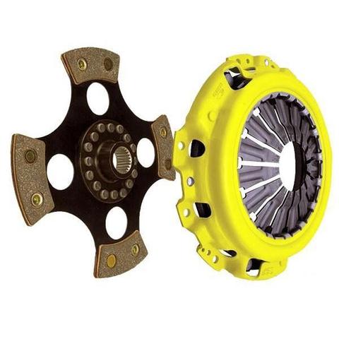 ZX4-HDR4 kit features ACT's most popular Heavy Duty pressure plate. ACT Heavy Duty pressure plates use exclusive diaphragm design to increase clamp load, reduce deflection and maximize clutch life. All diaphragms endure a four-stage, heat-treating process for unparalleled performance. ACT pressure plates have precision cover stampings to provide rigidity and consistency. ACT's 4-pad rigid race discs are made with high quality, ceramic friction materials. The chrome-moly hub is heat-treated for strength and durability. The lightweight, rigid design allows for quicker shifts and smooth, trouble-free service. With the 4-pad rigid race disc, engagement is harsher, but shifting is faster. The 4-pad rigid race disc is well-suited for the smaller disc sizes in smaller engines.