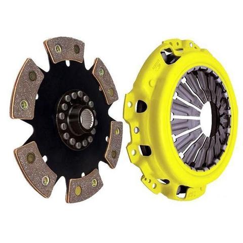ZX4-HDR6 kit features ACT's most popular Heavy Duty pressure plate. ACT Heavy Duty pressure plates use exclusive diaphragm design to increase clamp load, reduce deflection and maximize clutch life. All diaphragms endure a four-stage, heat-treating process for unparalleled performance. ACT pressure plates have precision cover stampings to provide rigidity and consistency. ACT's 6-pad rigid race discs are made with high quality, ceramic friction materials. The chrome-moly hub is heat-treated for strength and durability. The lightweight, rigid design allows for quicker shifts and smooth, trouble-free service. With the 6-pad rigid race disc, engagement is harsher, but shifting is faster. The 6-pad rigid race disc is recommended for larger clutch sizes to absorb more heat.