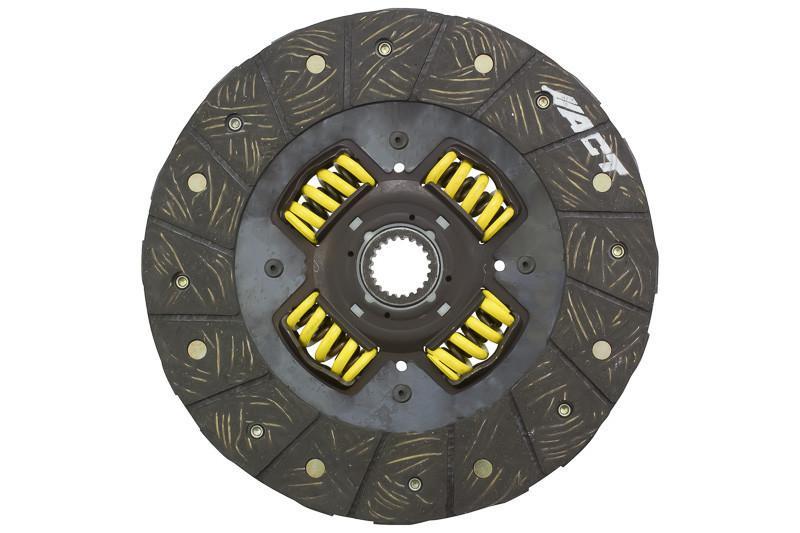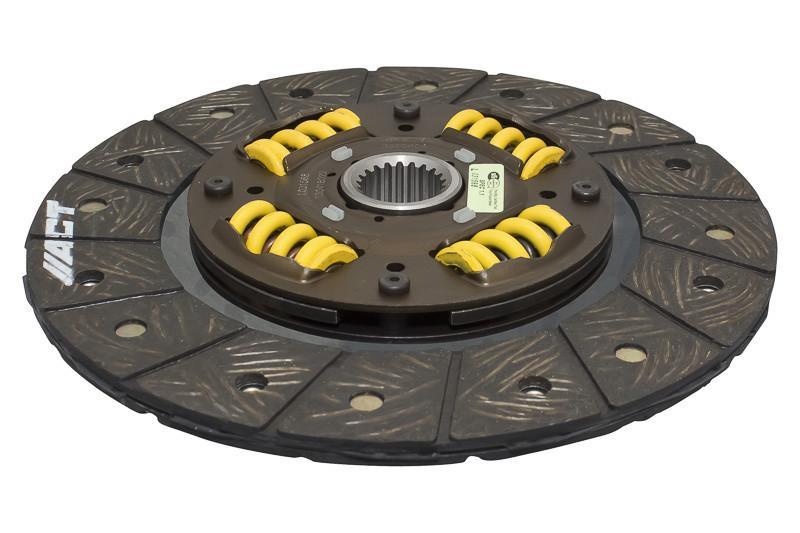 3000604 is a performance street disc and the most popular disc purchased. It features premium organic materials with high copper content for better heat transfer. Performance street discs allow for quicker shifting and smooth engagement. These discs feature a reduced marcel for faster shift action to complement ACT pressure plates. ACT spring-centered assemblies use bushings and cone springs similar to factory clutch discs. This creates frictional dampening, which improves clutch life and reduces noise. Quiet operation with increased strength and reliability.