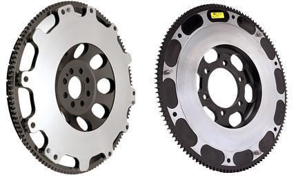 ACT flywheels are lighter, stronger and safer than stock cast flywheels to meet the needs of both enthusiast and hard core racer. Material is properly distributed for maximum strength, lower inertia, good heat tolerance and rigidity. One piece construction allows less opportunity for failure and provides uniform efficient heat transfer from the clutch disc. No more warped inserts or loose ring gears. Integral ring gear permits more weight reduction where it matters most and eliminates the chance of gear breakage or separation from the flywheel. Precision machined threads will not easily strip out or get damaged like those found on aluminum flywheels. ACT engineers XACT flywheels using the latest CAD and FEA (finite element analysis) software to evaluate all design alternatives to get the best results possible. By hot forging chrome-moly steel, each flywheel yields an ultra fine centralized grain structure that is superior in strength to any other manufacturing method. Timing marks are precisly located and clearly displayed (when applicable). ACT gives extra effort to strategically slot XACT ProLite flywheels to lower inertia without sacrificing strength and heat dissipation. ACT heat treats the entire forging for strength and toughness, and induction hardens their ring gears for longest gear life. XACT Flywheels are certified as meeting SFI Specification 1.1. XACT Flywheels are legal for competition in all racing organizations where SFI certification is required. Ring gears are cut with lead-in chamfers for better starter engagement and prevention against rounding off gear teeth. Engineers at ACT demand tight tolerances for fit, concentricity and parallelism so that flywheels will have an exact fit onto the crankshaft, and operate smoothly even at extremely high rpm. All flywheels are CNC machined and dynamically computer balanced for super smooth high RPM reliability. * Quicker acceleration and increased throttle response * * Maximum gear life - gear will not wear out or fall off * * Serviceable - can be resurfaced with no need to purchase additional parts * * Chrome-moly forgings three times more rigid than aluminum * * Longer lasting because of heat treated friction surfaces * * Excellent heat capacity from retaining adequate material behind the friction surface * * Trouble-free single piece design * * SFI certified to insure safety