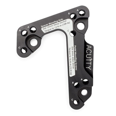 The ACUITY Throttle Pedal Spacer allows the driver to select one of 3 possible non-stock pedal locations. Each location provides a slightly different driving feel. We recommend trying them all to find what suits you best. Position A moves the throttle pedal closest to the driver. Position B is slightly further from the driver than Position A and slightly closer to the brake pedal, laterally. Position C is furthest from the driver (still much closer than stock) and also moves the accelerator pedal closer to the brake pedal, laterally, like Position B