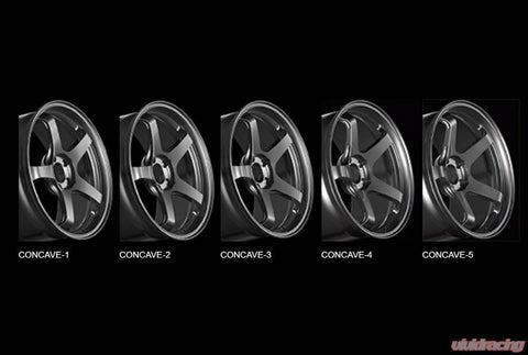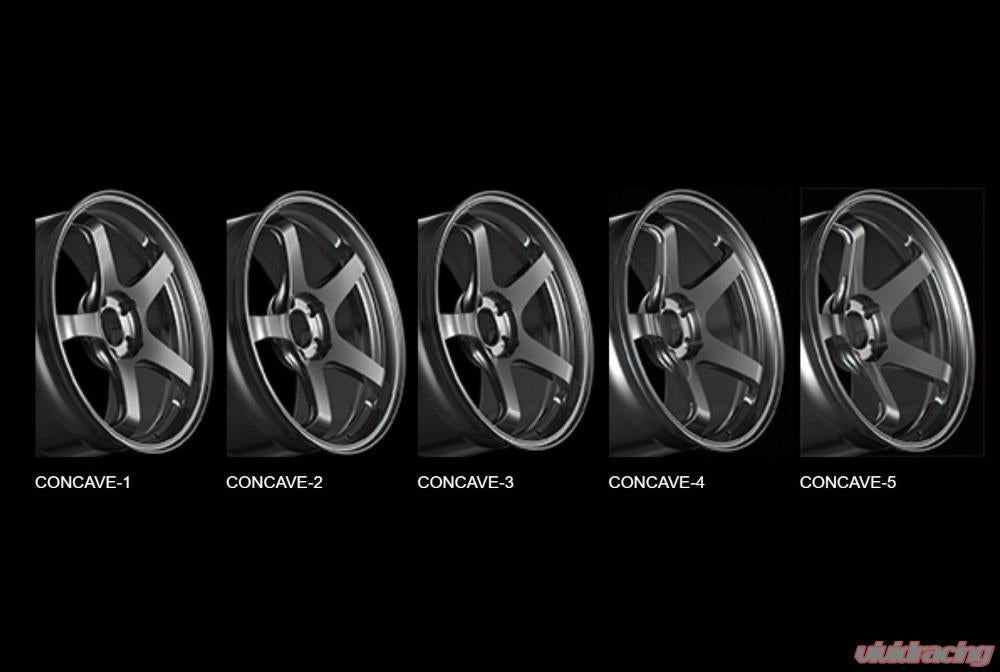 The GT BEYOND in five concave configurations. YOKOHAMA designed this size with the maximum possible concave, taking rim width and inset into account, along with the caliper clearance necessary for the cars that can use this size.