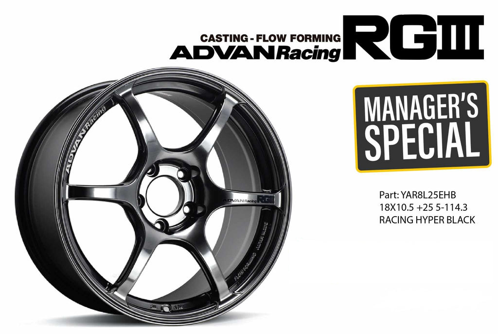 One of the most iconic wheels Advan has ever produced is the RGIII. It arrives on the scene as a more refined version of the RG II. It is also highlighted by the same side-cut spokes. Based on the RG II's six-spoke design, the spokes are longer, with a concave design dipping toward the center of the wheel. And that makes it an even more beautiful wheel.