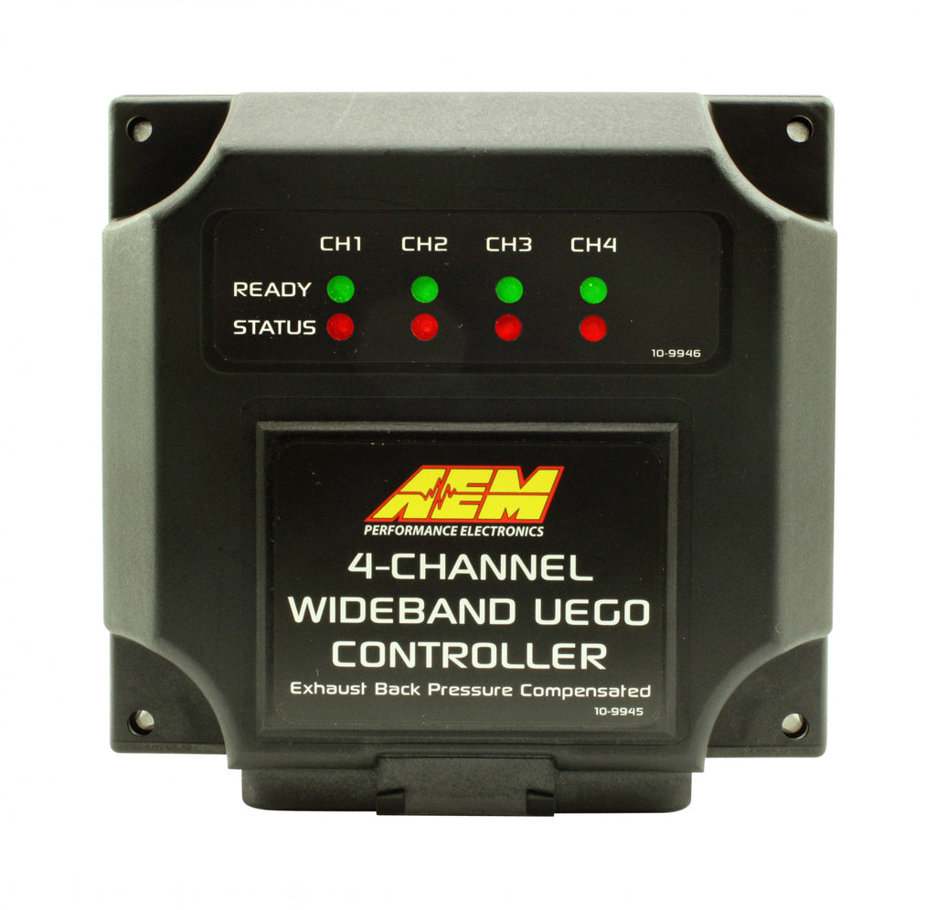 AEM’s 4-Channel Wideband UEGO Controller is a must for racers who want to monitor and/or tune individual cylinder AFR using a standalone engine management system for maximum engine performance and reliability. It allows users to simultaneously monitor individual cylinder Air/Fuel Ratios (AFR) on up to four cylinders and can monitor 8 individual cylinders with the addition of a second unit (up to 12 cylinders by daisy-chaining three units together using AEMnet CAN bus). AEM's optional exhaust backpressure compensation kit allows racers with turbos to mount the sensors pre-turbo for accurate, responsive AFR readings in every cylinder. If you want the absolute best tune and most accurate engine air/fuel ratios there is no substitute for using the 4-Channel Wideband UEGO AFR Controller.