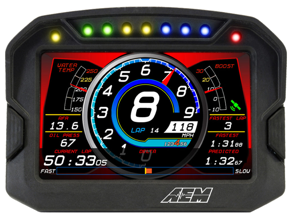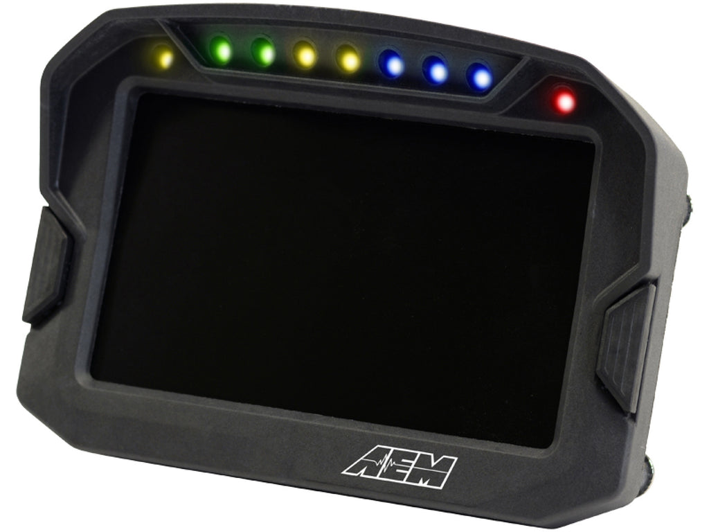 The CD-5 Carbon receives channels from two independent CAN bus inputs and it does not require special modules to read AEM and/or 3rd-party CAN signals. We have validated it to communicate with over 250 non-AEM devices, 2008-up stock ECUs via the OBDII port (see Supported Apps Tab), and the CD-5 Carbon can be added to any vehicle with the addition of our 22 Channel CAN Sensor Module. The CD-5 Carbon is ECU CAN ready and does not require external modules for CAN to CAN communication, just load your configuration and go! All channels can be named in virtually any language so that the information displayed makes sense to the user when displayed, whether on the main screens or warning alerts. Third-party systems will require download of 3rd party DBC CAN bus protocol files for proper operation if they are not included in our setup software. We currently have over 250 validated 3rd party applications, and include a CD Dash Power Cable to simplify the installation of 3rd party devices. We have also developed 3rd Party Plug & Play Adapter Cables for certain applications, please contact AEM for a full list of supported applications.