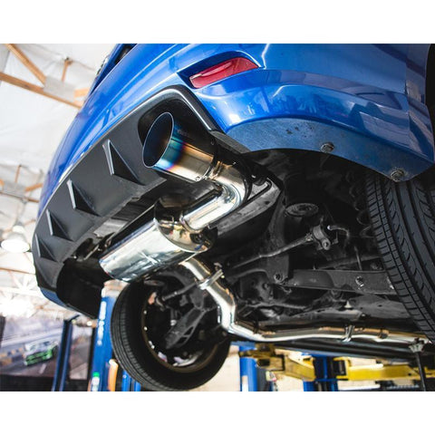 Agency Power has developed one of the best sounding and performing exhaust systems for the Subaru WRX Hatchback. The new exhaust features an all T304 stainless steel piping in 3inch diameter from the catback. The piping is all hand polished featuring robotic TIG welding. The midpipe includes a resonator to assist in keeping that traditional boxxer engine sound with an exotic race tone touch that does not drone in the cabin. The _ inch thick flanges offer a secure fit along with the factory placement exhaust hangers. The straight through muffler is designed to optimize horsepower with very little restriction. The catback exhaust features a 4 inch single straight exit Titanium Tip with the Agency Power logo.