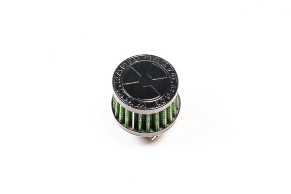 The Radium Engineering 18-0042 air filter is commonly used for venting engine crankcase vapors, fuel cells, etc. It is compatible with a 3/4" (19mm) barbed nipple.