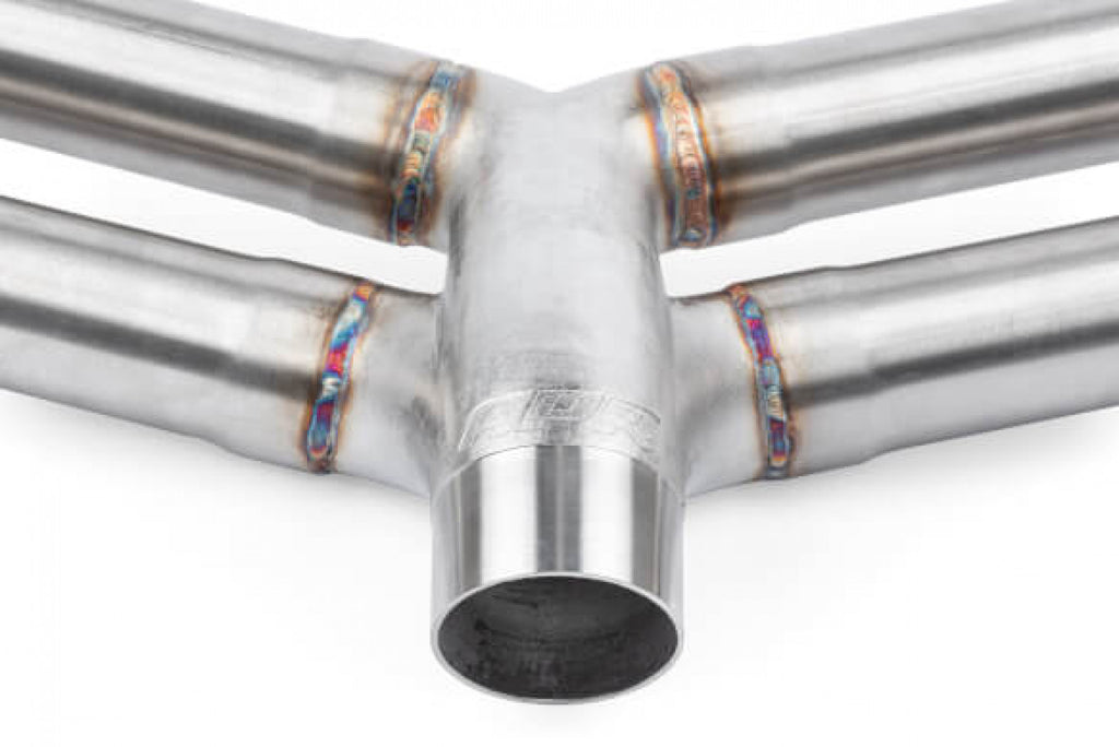 The APR Axleback Exhaust (Valveless) Conversion is a direct bolt-on to an existing APR Catback Exhaust System and converts your valved with mufflers system to the APR Valveless System.