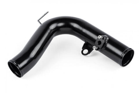 The APR Charge Pipe System is a comprehensive, direct replacement upgrade, to the factory system. The factory plastic and rubber turbo outlet pipe is a small and restrictive 38mm pipe that has shown to melt, deform, and cause boost leaks under extreme conditions. The APR System remedies this by upgrading the system to a larger 60mm aluminum pipe, along with a new multi-ply fluorosilicone coated turbocharger outlet hose. APR EZ-Flow stepped lip hoses provide a smooth transition from hose to pipe, and the included T-bolt clamps ensure a strong and leak-resistant seal at the pipe. All brackets are TIG-welded for a strong and precise fit, and the pipe is coated black. A protruding lip at the edge of the pipe helps prevent hose slippage. This pipe is a direct fit to the OEM turbocharger and the APR or OEM intercooler hose. APR Recommends upgrading the intercooler hoses as well for maximum performance and reliability. We upgrade the factory plastic with a strong 60mm aluminum pipe. Due to the thin-walled nature of metal vs plastic, we're able to increase the internal diameter of the pipe to maximize airflow. The MAP sensor mounting point is made from CNC-machined billet-aluminum. All brackets are TIG-welded for a strong and precise fit, and the pipe is coated black. A protruding lip at the edge of the pipe helps prevent hose slippage. This pipe is a direct fit to the APR or OEM throttle body hose, as well as the APR or OEM intercooler hose. APR recommends upgrading the throttle body and intercooler hoses as well for maximum performance and reliability.