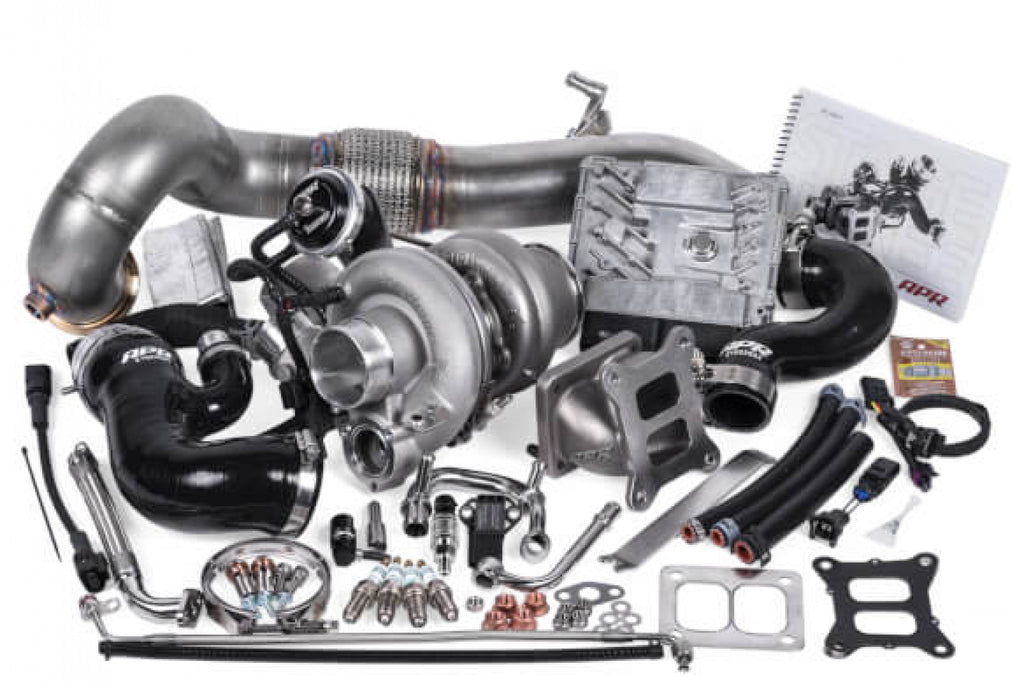 APR Presents the EFR7163 Turbocharger System for the 2.0T EA888 Gen 3 engine! The APR EFR7163 Turbocharger System produces up to 536 HP and lays down 10-second quarter mile passes, all through a convenient and affordable, turn-key solution. It represents a threat to the establishment of turbo four cylinder vehicles of yesteryear, and breaks the hearts of muscle cars and exotics everywhere as they are left in the dust by an engine a third the size of theirs, screaming a turbocharged battle cry as it passes. It is a vicious beast, yet a beast easy to tame. It makes for a civilized that quietly sips premium fuel with surprisingly excellent mileage. Deceivingly quick transient response, with near stock-like turbo lag makes for an experience devoid of the compromises many would expect from an engine this size. It is the answer to the desire for more power, and it's the brainchild of APR's talented engineering teams, with over a year and a half of initial development, and a never ending drive for perfection. It is easy to install, blisteringly fast, and produces an absolutely exhilarating driving experience! Software Included.