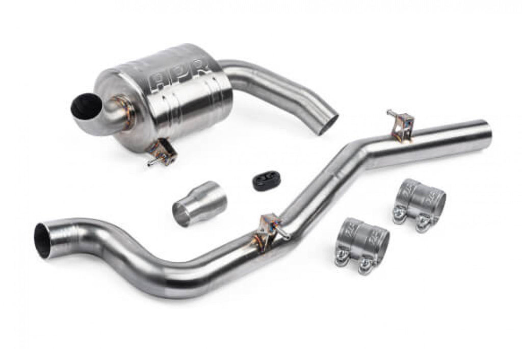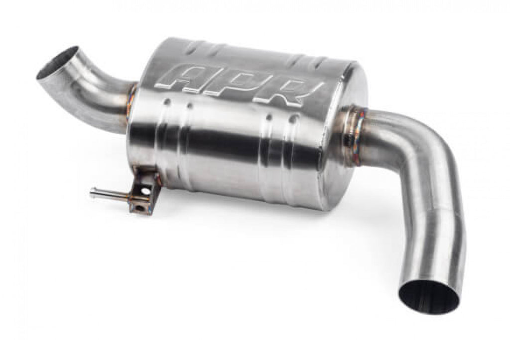 The APR Catback Exhaust System personalizes your vehicle's sound and performance. Beautifully hand-crafted T304-stainless-steel components adorn the system with stunning TIG-welding throughout. Our straight-through brushed-finished muffler smooths the exhaust note to a deep growl, without adding restrictions, rasp or drone. Strong high-quality bracketry and OEM-style clamps hold the system steadily in place, making the install or removal a snap, and fitment simple, yet precise. The full 3" tubing creates an ultra-smooth exhaust path, steadily feeding exhaust gasses out of the system, while looking tidy from under the rear bumper. Finally, the hidden 3" exhaust exit creates a clean finish that matches the factory exhaust exit strategy.