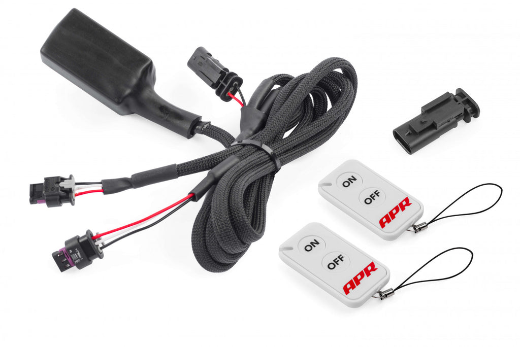 The APR Exhaust Valve Remote lets you override the factory exhaust valve operation to fully open the exhaust valves at the press of a button. Simply plug-and-play and press "ON" to open the valves fully. To return to the original behavior, press "OFF" and the valves will operate as if the device wasn't installed. This system works with both the factory exhaust and the APR Valved Catback Exhaust System.