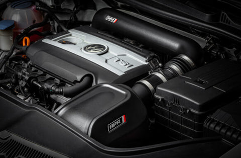The APR Intake System lets your engine breathe! This closed design rejects power-robbing heat from the engine bay thanks to the high heat deflection material used in the intake's design. It provides an unrestrictive path for cold, dense air fed from outside of the engine bay to maximize power. We use a high flow filter that provides excellent filtration without the restrictions, which keeps the engine clean while optimizing power delivery. On the flow bench, we recorded a 31% increase in CFM over the factory airbox, and a 24% increase over the total system. This translates to a sharper throttle response, lessened strain on the turbocharger, and more horsepower and torque. The system is an excellent value. It installs in minutes, looks fantastic, delivers a sporty engine note, and is recommended at all stages of performance. The APR Intake System is modular. It connects to the factory turbo inlet piping, and provides substantial gains. Those looking to complete the system can opt for the optional APR Turbo Inlet pipe to increase flow over the smaller factory turbo inlet piping. Our inlet pipe is a continuous massive pipe that connects to the turbocharger via a port-matching silicon coupler. The PCV system conveniently connects to the intake via a billet aluminum adapter. Lastly, the system uses a flex coupler that allows adequate engine movement and flex.