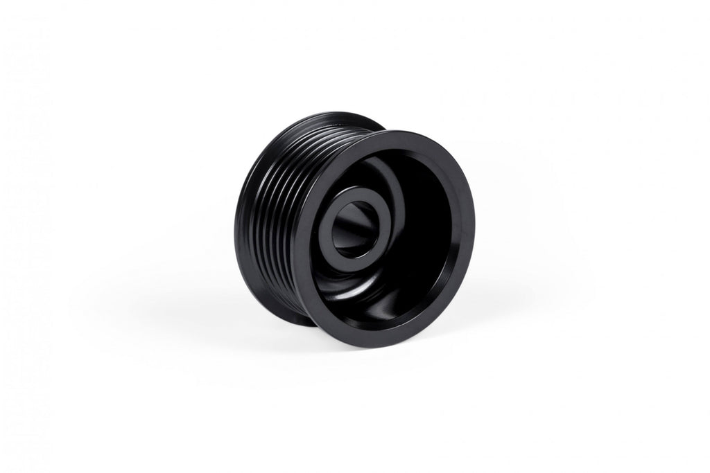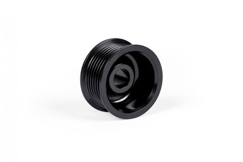 APR's Supercharger Drive and Crank Pulley Upgrades dramatically increase horsepower and torque by increasing the rotational speed of the factory supercharger. APR's Stage II Pulley ECU Upgrade makes the necessary engine management adjustments to handle the increased supercharger speeds, and in turn allows the engine to create more power. The pulleys are sold separately, allowing for multiple levels of performance, each of which builds upon the other. Finally, when combined with APR's Ultracharger Throttle Body Upgrade in a dual pulley setup, the system is alleviated of power robbing inlet restrictions, allowing the engine to achieve exciting new levels of performance!, , APR's Supercharger Drive Pulley Upgrade decreases the diameter of the factory pulley from 63.25mm to 57.75mm, which in turn spins the supercharger 9.5 Percent faster. This results in a healthy bump in horsepower and torque across the entire RPM range with the supercharger operating at a higher rate of speed. The pulley is CNC machined from billet stainless steel, e-coated black for an OEM appearance and is press fitted to the factory supercharger.