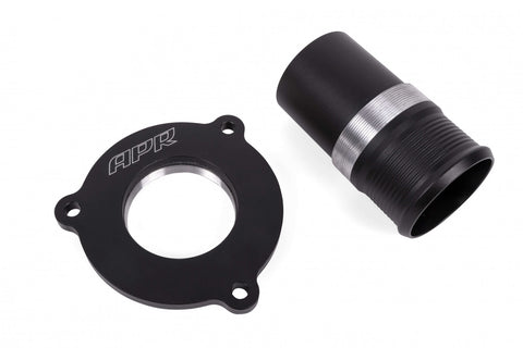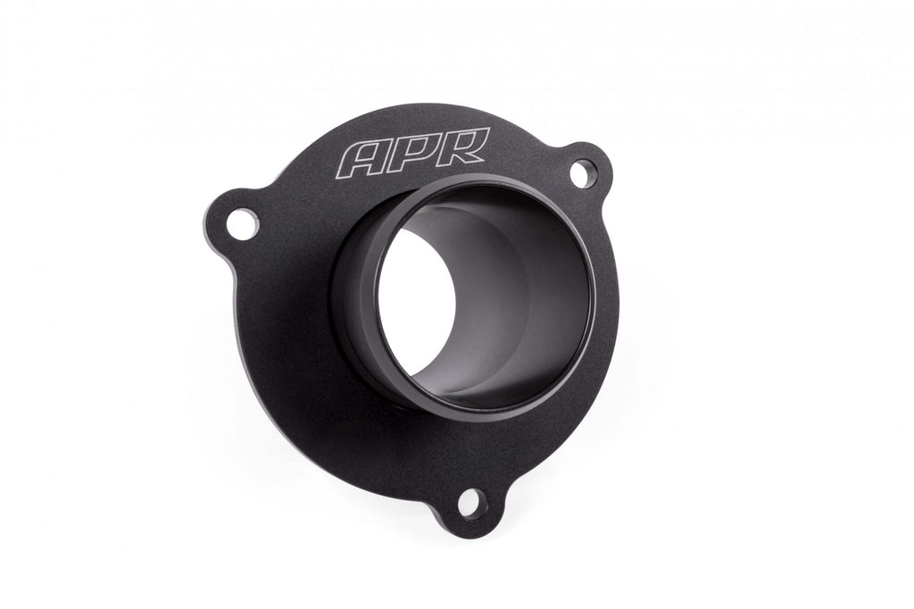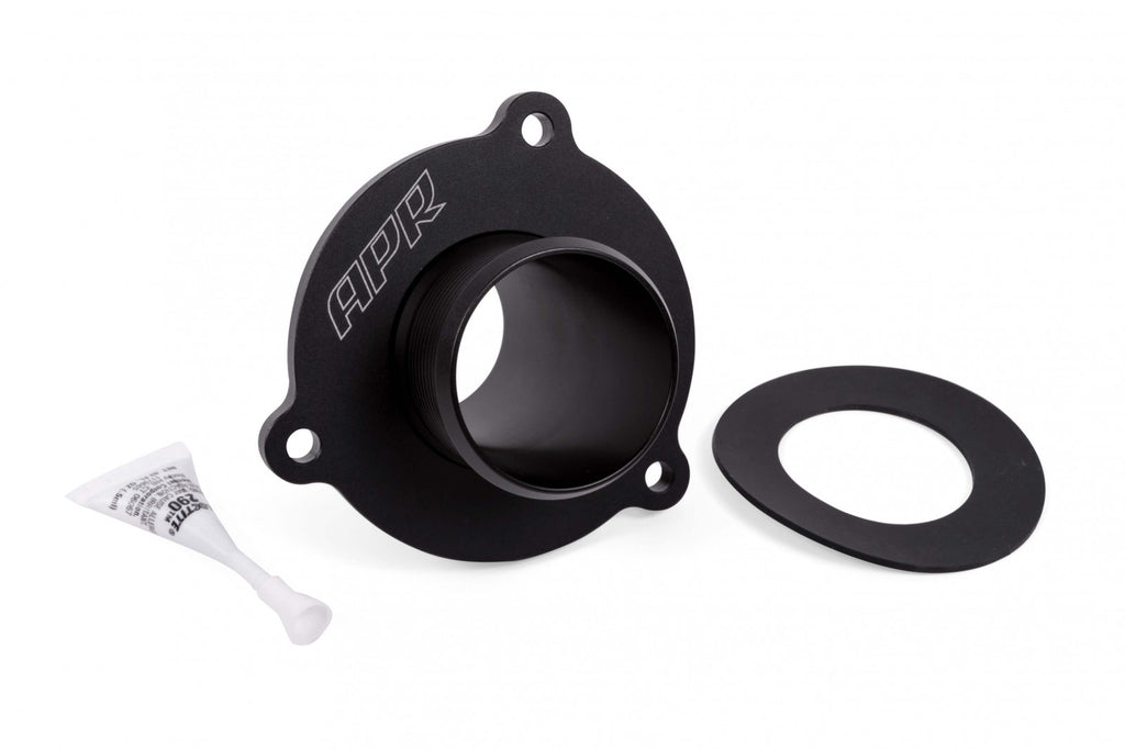 The APR Turbo Muffler Eliminator replaces the factory muffler with a straight, uninterrupted piece, CNC-machined from billet aluminum and anodized black. To ensure proper sealing, APR's engineers took a two-part approach. A Viton seal is included and forms a seal between the base of the muffler housing and the new piece. With the seal in place and the outer flange installed, the muffler eliminator tube screws into place, forming a full, uninterrupted path for airflow.