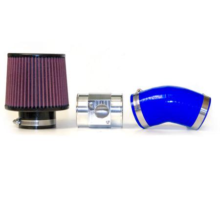 High flow inlet extensionincluding 3" billet aluminum MAF housing, 3" inlet elbow, and 3" openelement filter. Bolts onto our 3" inlet pipe kit to complete a truehigh flow 3" intake tract. Deletes the restrictive factory airbox andclears the area inside the driver side fender and headlight area to runFMIC pipes in and out. Specify color: black, red, or blue siliconeconnectors