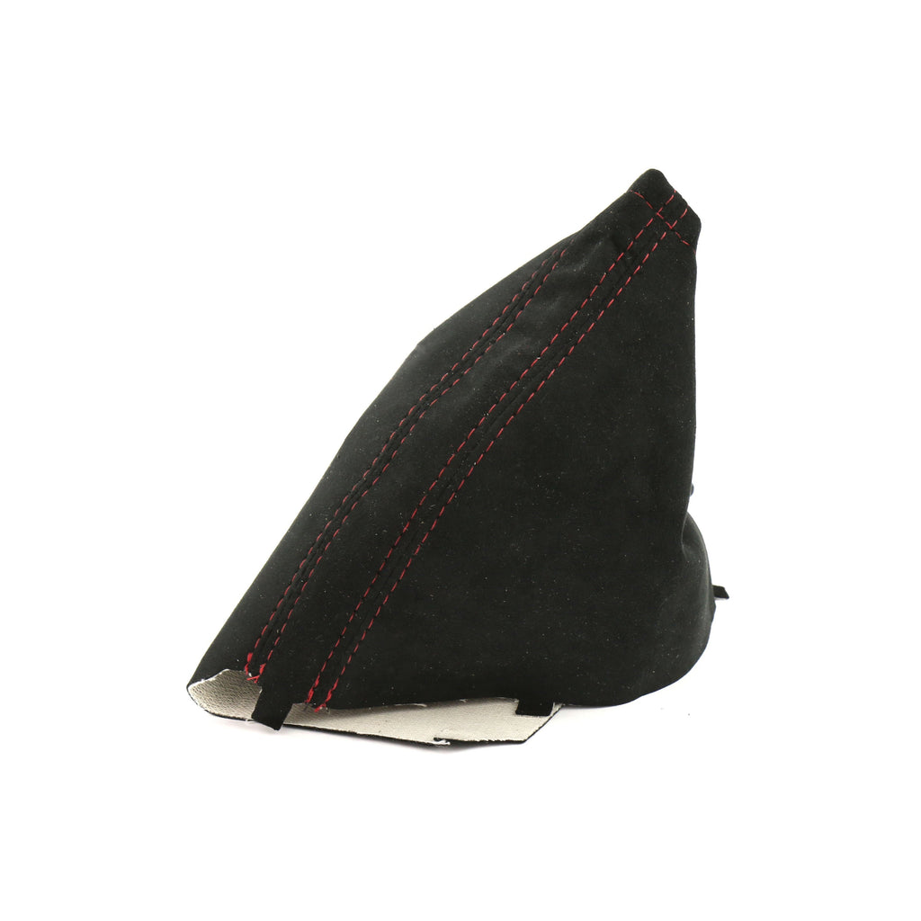 This particular product is the Black Alcantara E-Brake Boot with Red Stitching. The material has been CNC plotter cut to allow for the best fit and finish from part to part and will have as close to a factory fitment as possible. This boot is then hand-stitched by experienced seamstresses and manufactured from 100% genuine Alcantara from the Alcantara company which also provides materials to meet the high standards for automotive companies that include McLaren and Aston Martin. This automotive grade Alcantara has been selected with multi-layer construction to provide maximum durability and longevity.