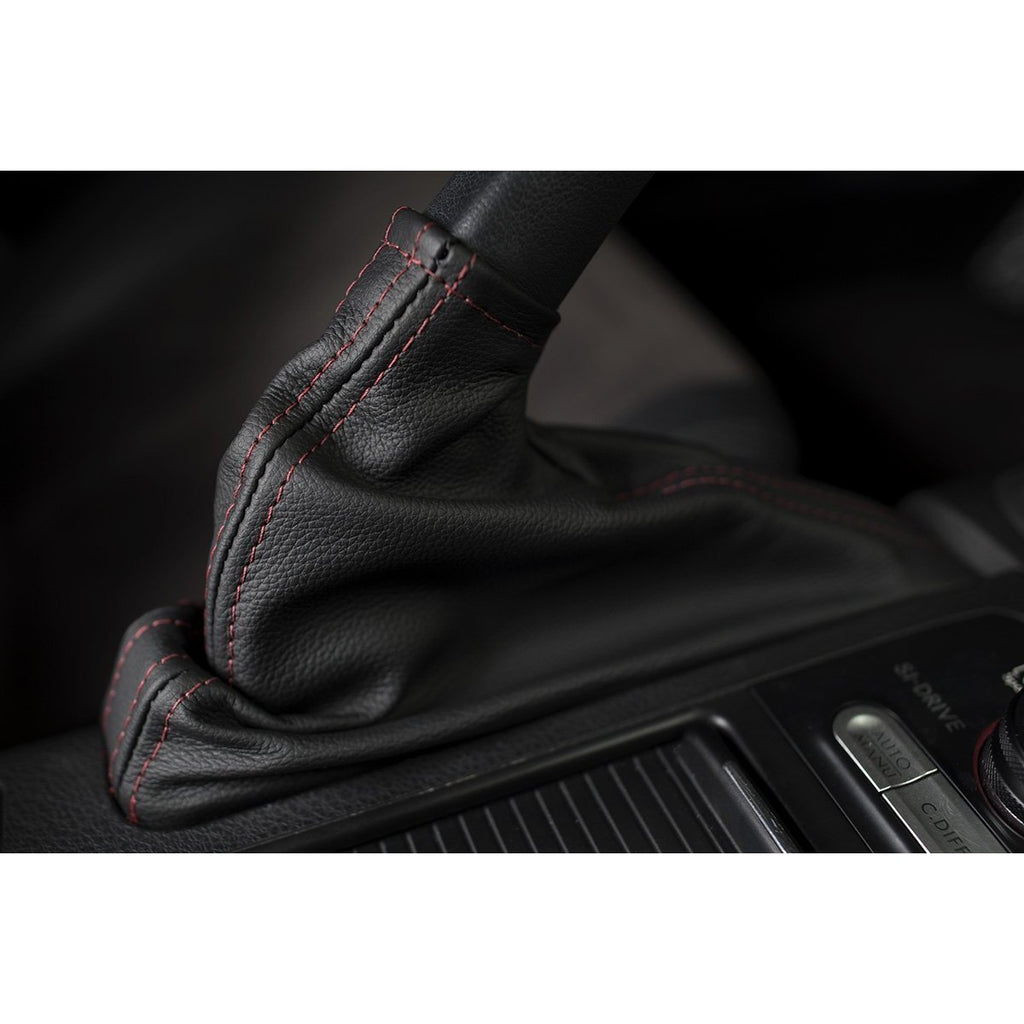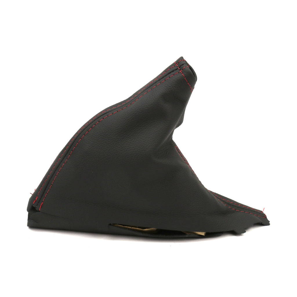 This particular product is the Black Leather E-Brake Boot with Red Stitching. The material has been CNC plotter cut to allow for the best fit and finish from part to part and will have as close to a factory fitment as possible. This boot then has been hand-stitched by experienced seamstresses and manufactured from 100% genuine soft touch cowhide leather that has been carefully inspected and hand selected for a guaranteed soft feel and texture while providing durability and longevity.. The material has been carefully crafted to ensure proper fit and finish work seamlessly within the factory trim piece constraints.
