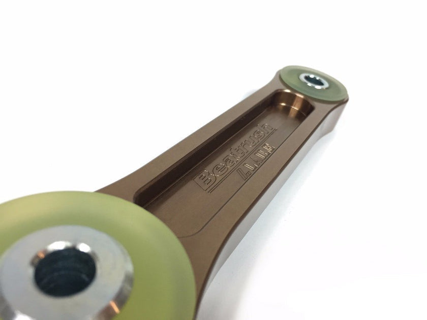 The Beatrush Pitching Stopper mount is light weight, strong, and rigid. Made out of Forged 7075 aluminum alloy. It is 250G lighter than stock. Shifting is improved due to the significant reduction of front-to-back movements while the engine is under on/off throttle conditions; furthermore, it improves throttle response.