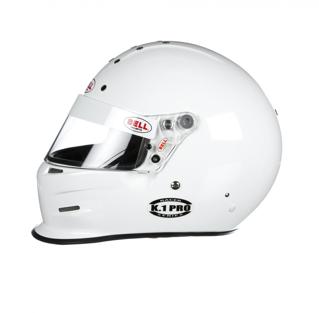 The K.1 Pro is a multi-use, full-feature helmet with superior ventilation, Aero styling and Bell’s aggressive chin bar design and front chin gurney (Duckbill). The K.1 Pro is a great helmet for open wheel racers, closed car racers and kart racers who demand superior features including light weight, excellent fit and multiple ventilation options. The K.1 Pro can be used in an open wheel configuration with air intake and with a closed car configuration with top forced air insert. The K.1 Pro includes a top air intake for pavement applications and vent plugs for dirt applications.