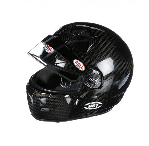 Based on the HP7 design and featuring an ultra-lightweight carbon shell using Bell’s high-pressure proprietary molding system, the RS7 Carbon uses an innovative shell and shield design to improve acoustic comfort, aerodynamic performance and energy absorbing capacities. The sleek, aerodynamic design features an advanced ventilation system with 14 intake and extraction channels with air intake covers. The RS7 Carbon is available in three versions: RS7 Carbon, RS7 Carbon with Ear Cups, RS7 Carbon with Front Chin Bar Gurney. Features:
