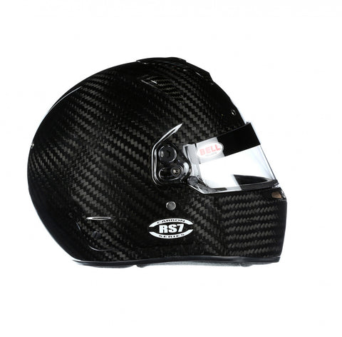 Based on the HP7 design and featuring an ultra-lightweight carbon shell using Bell’s high-pressure proprietary molding system, the RS7 Carbon uses an innovative shell and shield design to improve acoustic comfort, aerodynamic performance and energy absorbing capacities. The sleek, aerodynamic design features an advanced ventilation system with 14 intake and extraction channels with air intake covers. The RS7 Carbon is available in three versions: RS7 Carbon, RS7 Carbon with Ear Cups, RS7 Carbon with Front Chin Bar Gurney. Features: