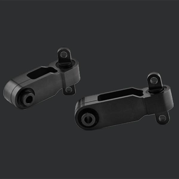 Boomba torque dampers are designed to eliminate wheel hop and improve the vehicle stability. They allow the wheels to gain better traction and improve acceleration. They eliminate 100% of wheel hop but transfer more vibration to the car body. Installation is simple and does not require engine support. They are machined of lightweight, aircraft quality aluminum with solid polyurethane bushings. The polyurethane hardness is carefully chosen so the engine mounts do not transfer any excessive vibrations to the body but give you very solid feeling during acceleration. Motor mounts are direct replacement of the factory top dog bone mount and bottom dog bone mount. They use the same hardware. You'll be surprised how smooth your car accelerates with Boomba Motor Mounts. Mounts are available with natural aluminum, red and black anodized finishes.