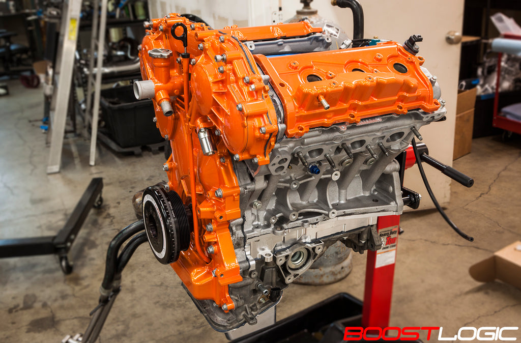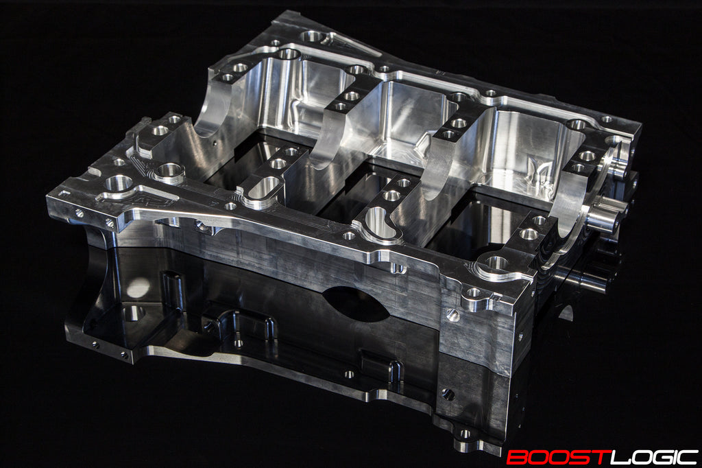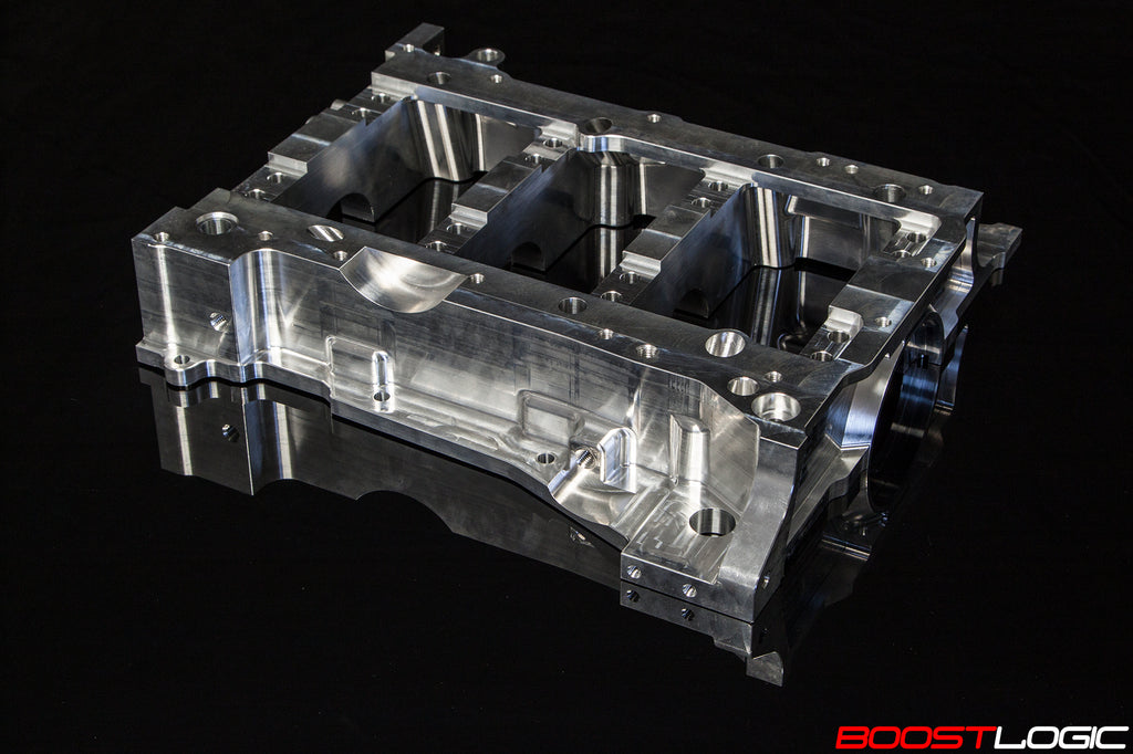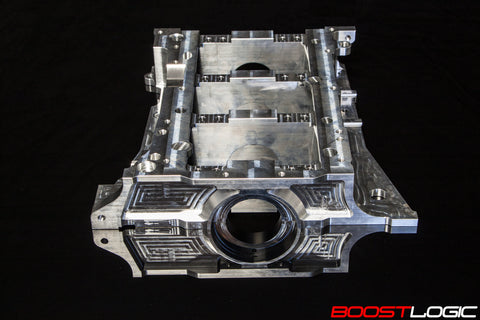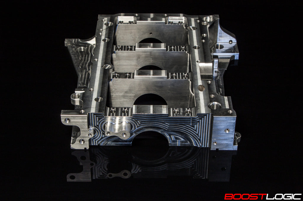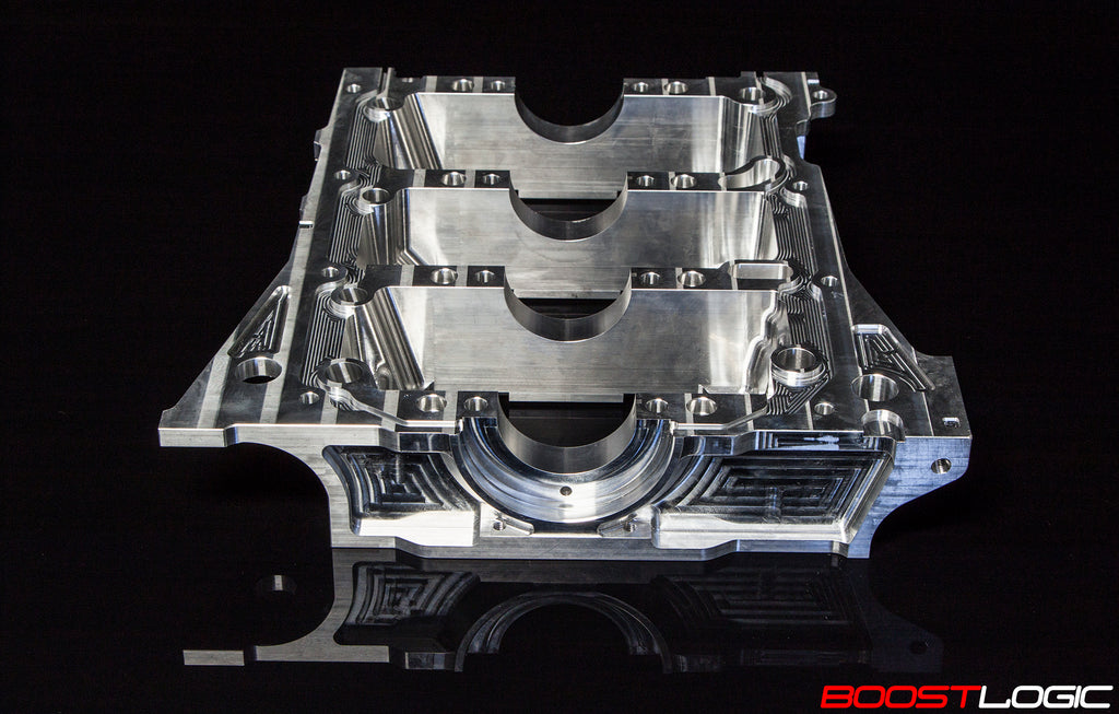 Our billet girdle is made from 7000 series aluminum to add significant rigidity to the VR38 motor. 7000 series aluminum is strong, with a strength comparable to many steels, and has good fatigue strength and average machinability. It has lower resistance to corrosion than many other Al alloys, but has significantly better corrosion resistance than the 2000 alloys.