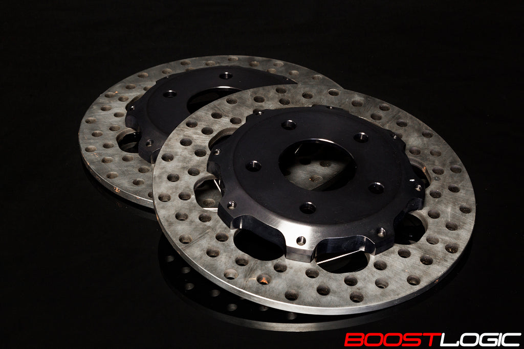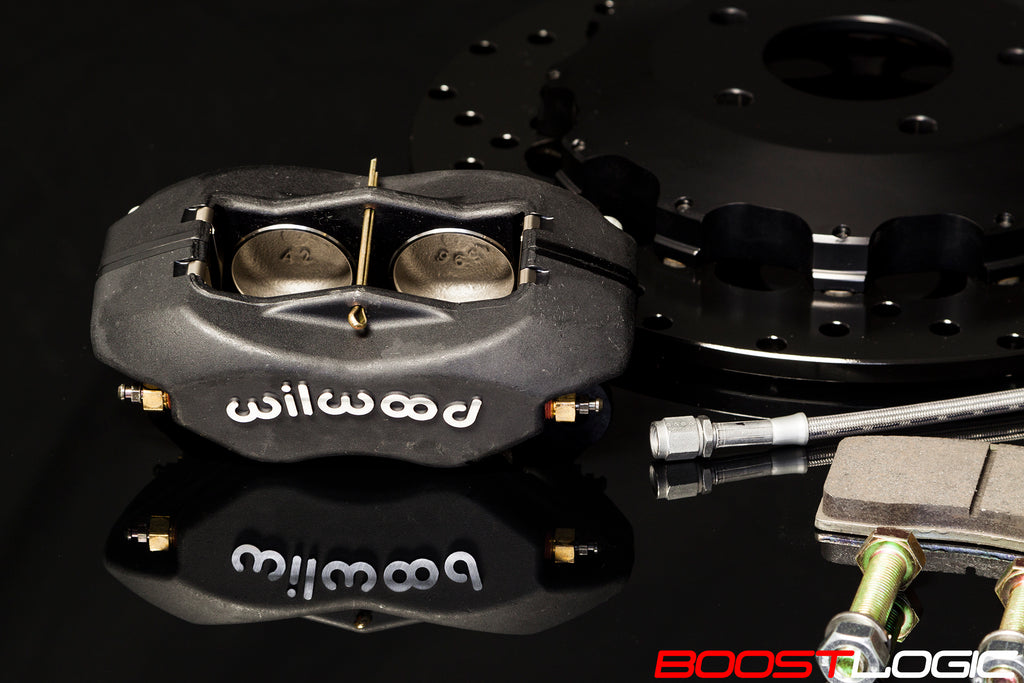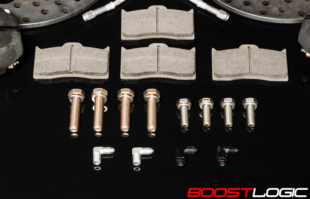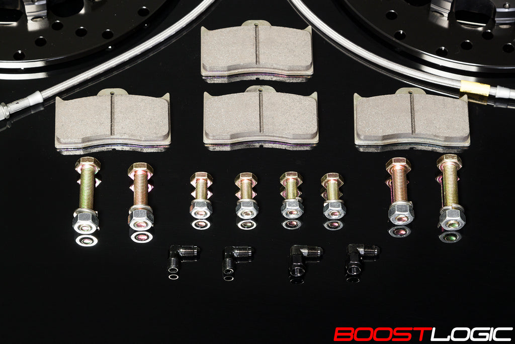 The Boost Logic Drag Brake Kit reduces the car’s weight by 94lbs total with 83.2lbs being rotational mass. The smaller Rotors & Calipers have also allowed Boost Logic to run a 15″ Wheel in the rear with the correct offset to mount the tires with the largest possible sidewalls. Due to the spindle in the front being so large, it is not possible to install 15” wheels on the front as well. We recommend using a 17″ or 18″ front wheels.