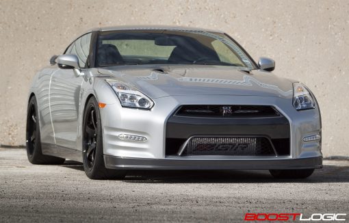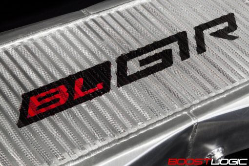 Boost Logics 1000HP ready intercooler. Boost Logic uses the same vertical flow design as the factroy to maintain a low pressure drop and high CFM rate for owners looking for better cooling over stock, and the flow to support high horsepower. Using the largest core possible to fit within the confines of stock ducting the Boost Logic intercooler has the ability to efficiently flow enough air to allow your GTR to make over 1000 wheel horsepower. A true bolt on replacement, the Boost Logic intercooler retains all stock ducting, brackets, and can use the OEM style intercooler piping. The intercooler is hand-made in house and the end tanks are polished to a mirror finish. The same intercooler was used on Boost Logics record setting GTR during its 203.4MPH Standing Mile..