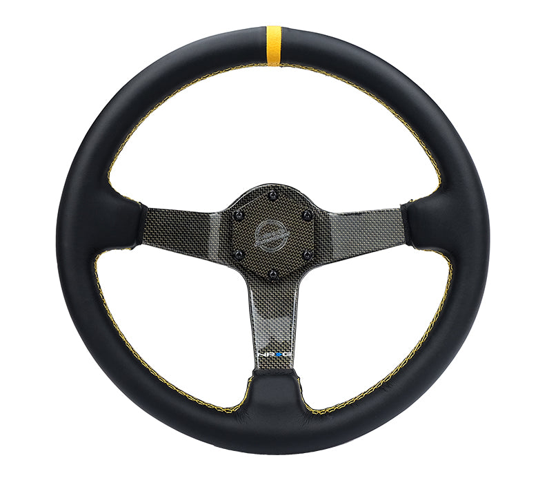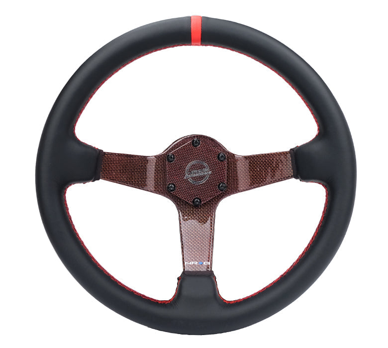 Introducing the new color laced carbon fiber steering wheel. Featuring real leather steering wheel with center mark. Ultra light weight and strong construction is highly recommended for street or racing applications.