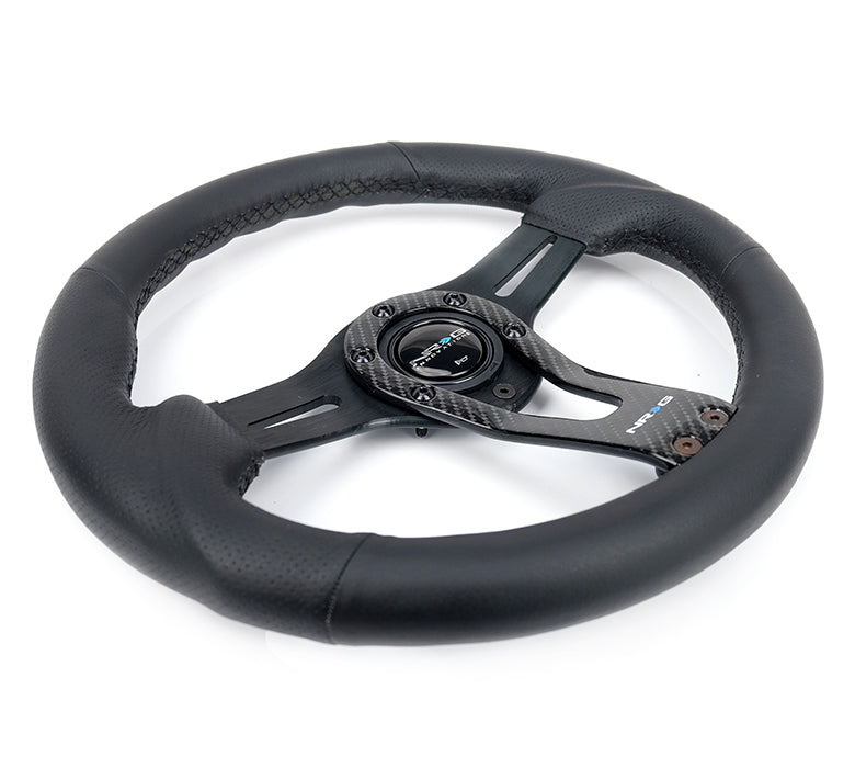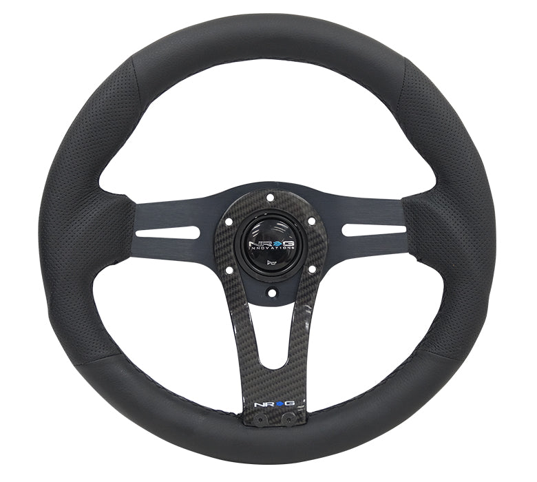 Sporting a double spoke design, the 002RCF Steering Wheel is the perfect mixture of elegance, and attitude featuring ultra tough aircraft grade aluminum spokes paired with smooth, twill woven Carbon Fiber spokes, all tied in with our signature perforated leather.