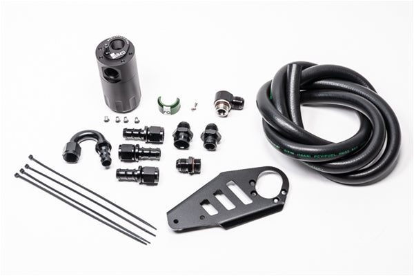 An oil catch can is essential on a performance vehicle to protect the engine from elevated levels of crankcase blow-by accumulated from aggressive driving. Excess oil saturated air circulating back into the air intake stream can lead to degraded performance.