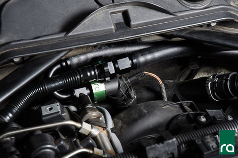 As shown below, this kit includes N54 specific billet 10AN adapter fittings eliminating the need to modify the OEM vent tubing.