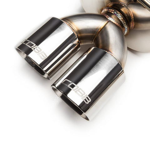 304 stainless steel is used throughout the exhaust construction. All components are meticulously TIG welded for outstanding appearance and strength. Four custom exhaust tips fill the factory bumper cut-outs perfectly, protruding just enough to show off the COBB logos etched into the top of each polished tip. Perfect fitment is achieved with either the Subaru factory downpipe or the COBB 3" SS Downpipe.