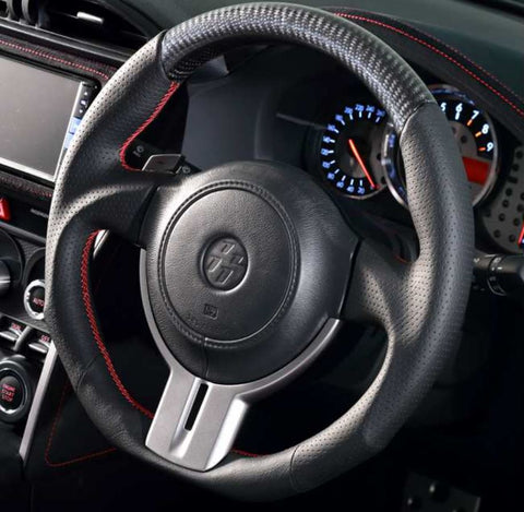 The Sports Steering SS358-Z is designed and manufactured by Damd Styling Effect, created specifically for the BRZ. There are a variety of version available including Formula, black leather x red stitch, Formula x black carbon and black leather x black carbon x red stitch. If interested, please contact us for more information regarding pricing, fitment, shipping costs, as well as installation recommendations.