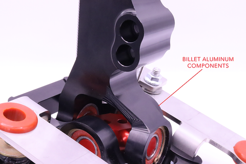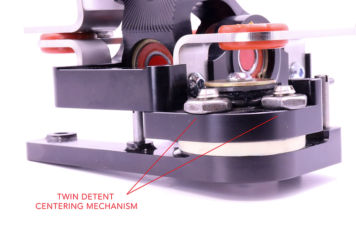 Our proprietary self-centering mechanism uses billet aluminum components, stainless steel detents, a torsion spring, and an ENDURO MAX radial bearing for the most precise movements. Our twin detents are loaded against a CNC machined, self-lubricating surface to give a crisp "home" for the shifter when centering itself in neutral. The spring pressure has been increased compared to the OEM feel to give the user a firmer shift when moving the shifter out of center.