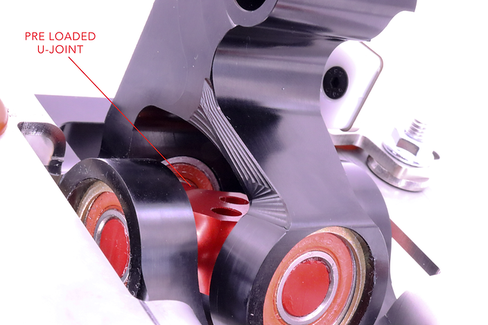 Manufactured in the USA by DARK MATTERX, we use only the best industry techniques and materials to create this beast. Billet aluminum makes up all structual components. The shifter pivots on a custom designed CNC machined U-joint. The U-joint utilizes four deep groove cageless ball bearings. Our Patented design address's fundamental engineering mechanics that set the DM-1D apart from every other short shifter package on the market.