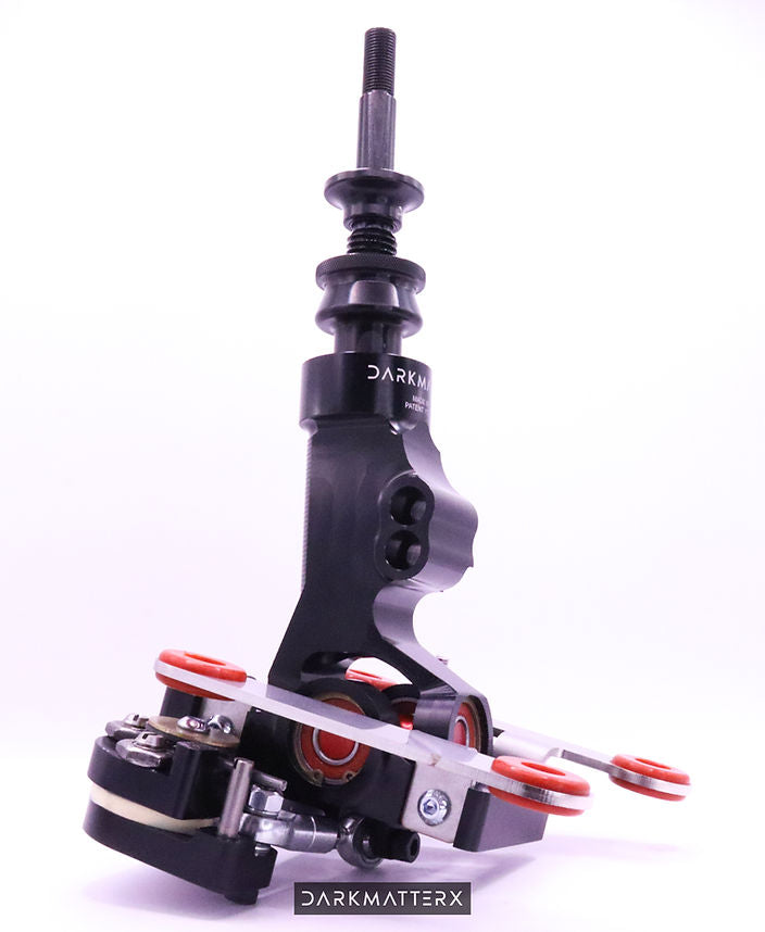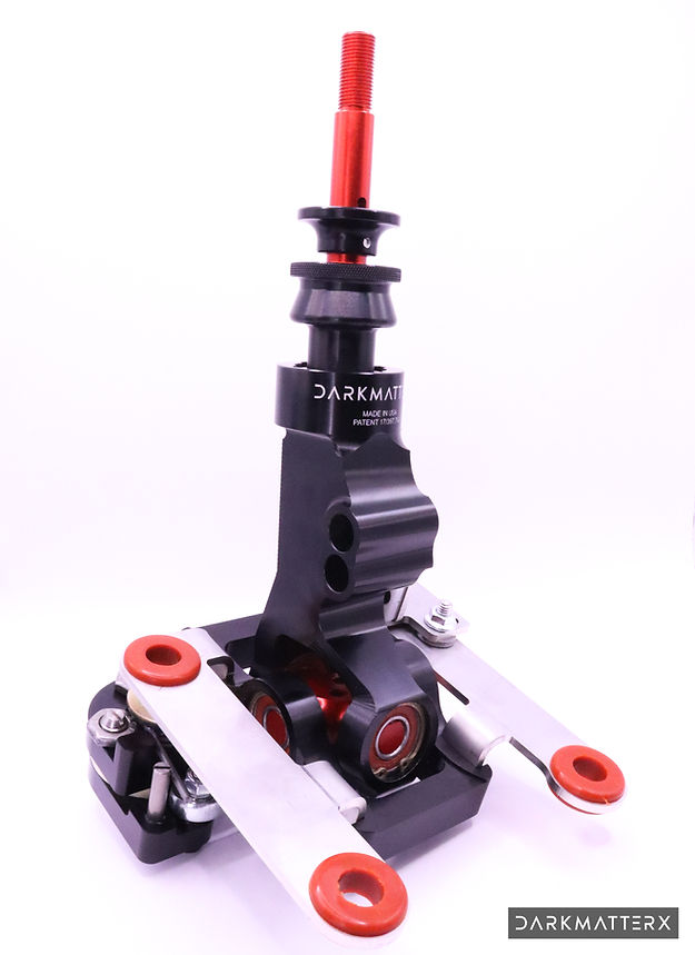 Manufactured in the USA by DARK MATTERX, we use only the best industry techniques and materials to create this beast. Billet aluminum makes up all structual components. The shifter pivots on a custom designed CNC machined U-joint. The U-joint utilizes four deep groove cageless ball bearings. Our Patented design address's fundamental engineering mechanics that set the DM-1D apart from every other short shifter package on the market.