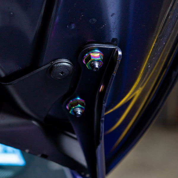 Our 6 piece hood kit includes bolts and washers manufactured from extremely durable, anticorrosive, and lightweight GR5 titanium metal. The kit is designed for the 2022+ BRZ and GR86.
