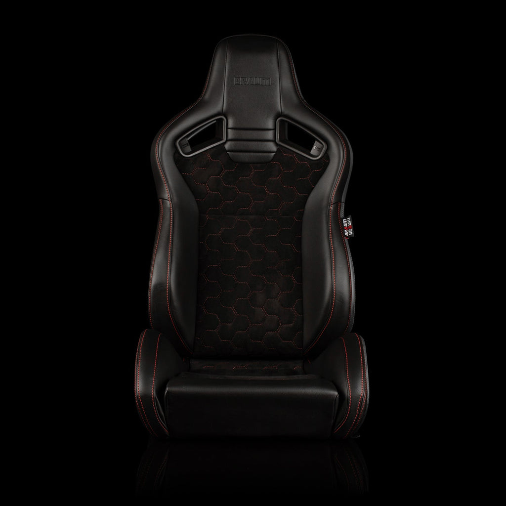 The Elite V2 Series are exclusive, all-new reclinable racing seats from the up-and-coming innovator of racing equipment: BRAUM. These seats are perfect for those who want to improve the looks, comfort and stability of their seats without sacrificing practicality. They feature a strong, lightweight tubular frame and injection molded foam for the ultimate combination of comfort, performance, and durability. The bolsters are pronounced and strategically shaped without being intrusive, so you can stay locked in and enjoy your drive without dreading the discomfort of ingress and egress that a fixed bucket seat would impose. The firm, high density foam provides excellent support while its heat and pressure sensitivity allows the cushion to soften and comply with your body’s shape for a more customized fit.